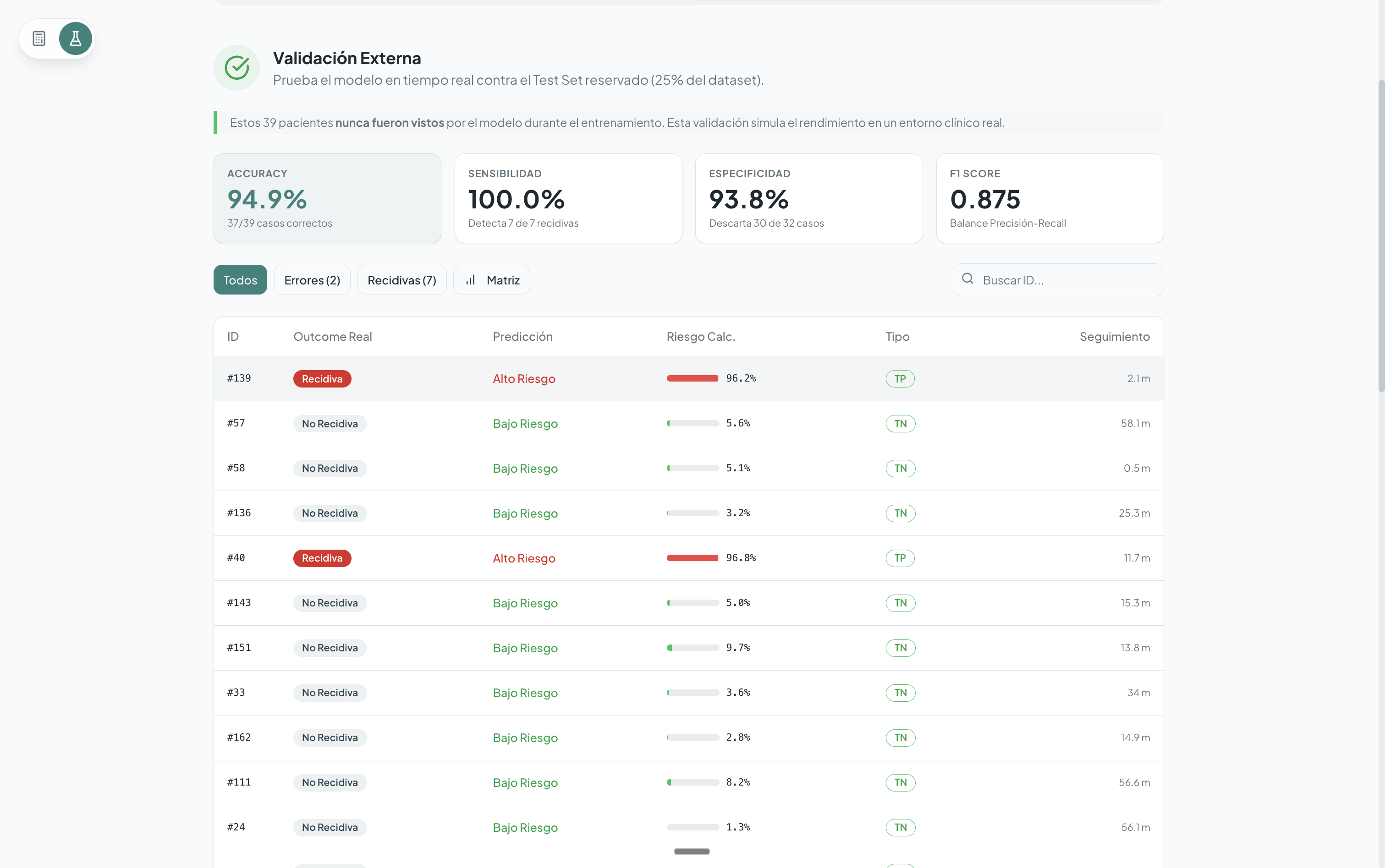 Herramienta de soporte a la decisión clínica para el Hospital de Sant Pau. Predice la probabilidad de recidiva para el cáncer de endometrio NSMP y ofrece soporte contextual de los factores que influyen, permitiendo tratamientos personalizados.